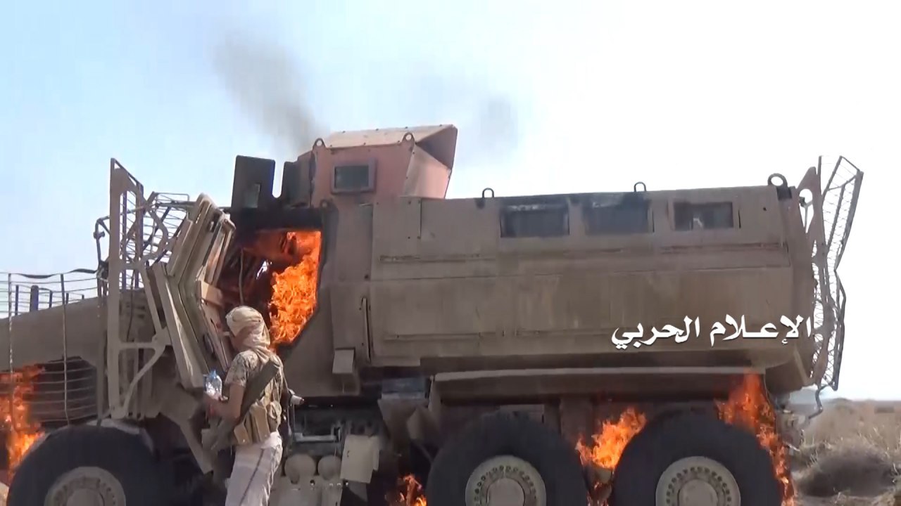 محويت نت #تعز صور من مشاهد وزعها الإعلام الحربي لاحراق مدرعة إماراتية في في جبهة #الساحل_الغربي