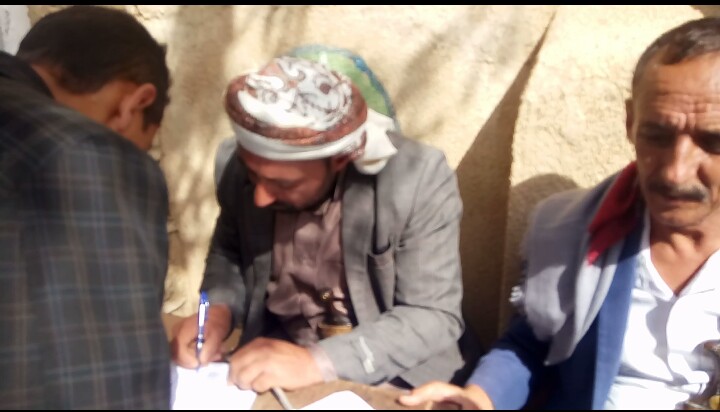 دشن وكيل محافظة المحويت يحيي صالح فرج ومعه مشرف التغذية المدرسية عبدالكريم الأخرم اليوم المساعدات الغذائية المقدمة من برنامج الغذاء العالمي للنازحين والمتضررين من العدوان في المحافظة.