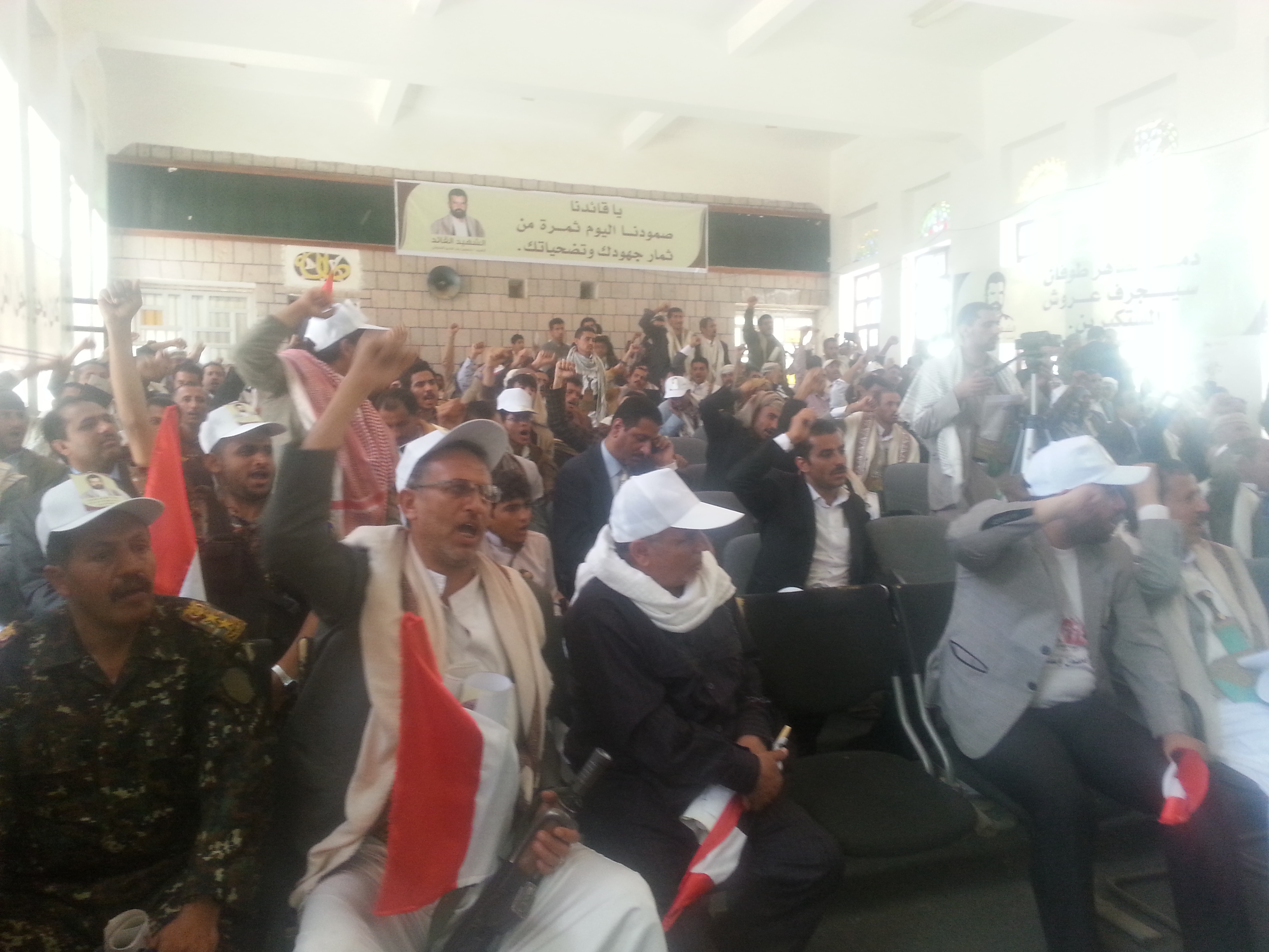 اقامت الجبهة السياسيه والثقافيه صباح اليوم بمركزمحافظة المحويت ندوه بعنوان .الصمود والثبات في سياسة وثقافة الشهيد القائد بتاريخ 25رجب 1437ه .حضرها ووكلاء المحافظه ومدير امن المحافظة وعدد من المثقفين والسياسيين في المحافظة القى المشاركون كلماتهم التي تحدثو من خلالها عن سيرة وصمود الشهيد القائد واكد المشاركون في الندوة على ترسيخ ثقافه الشهادة والاستشهاد لمواجهة الاستكبار العالمي المتمثل بامريكا واسرائيل ،واشاد المتحدثون بصمود وثبات هذا الشعب العظيم وان ثباته وصموده منبثق من صمود وثقافة الشهيد القائد رضوان الله عليه وان الوفاء للشهيد القائد بنقل هذا الثقافة لا ابناء المجتمع لمواجهة كل الاخطار المحدقه بهذه الامه .
