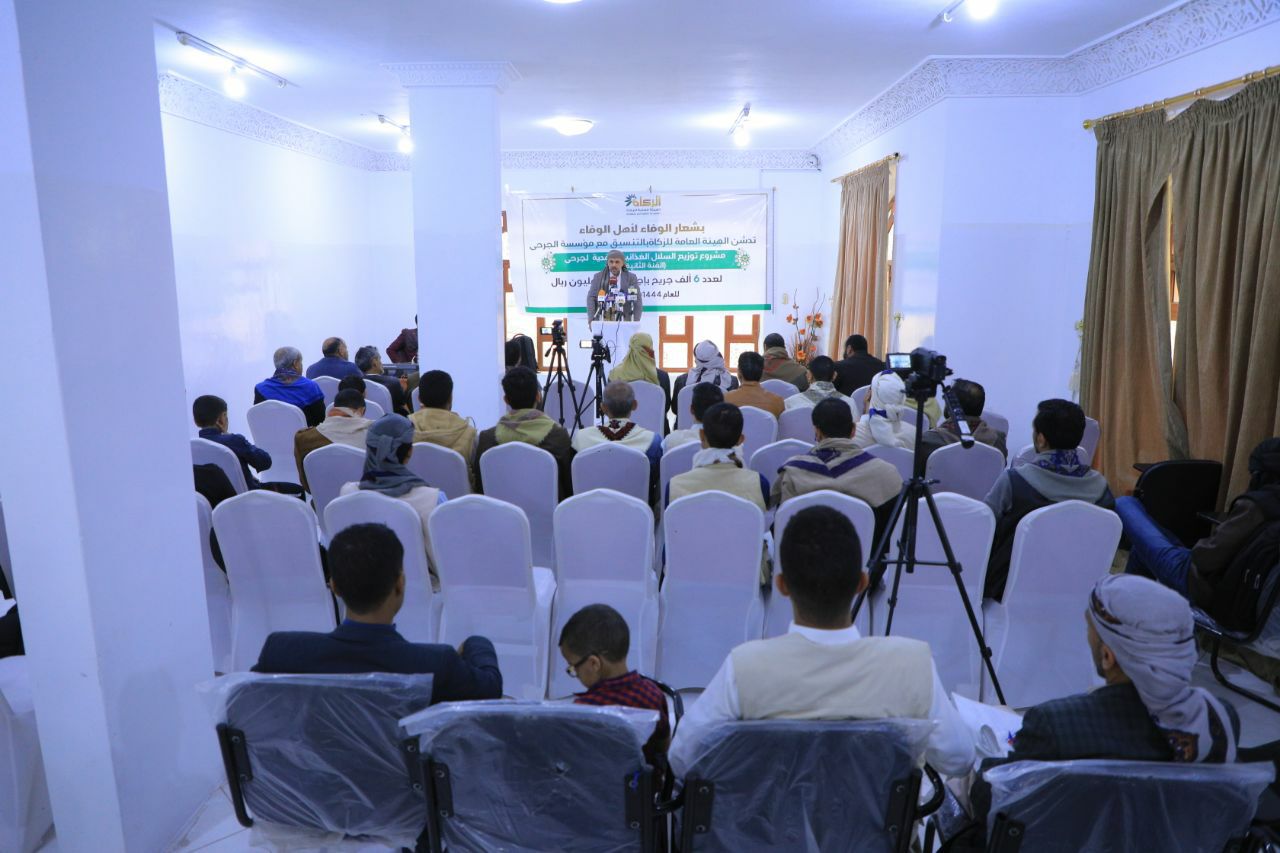 هيئة الزكاة بالتنسيق مع مؤسسة الجرحى تدشن مشروع السلال الغذائية النقدية لـ 6 آلاف جريح