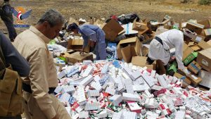 وأوضح مدير المركز يوسف العماري أن الكمية المتلفة تحوي 132 صنفاً منها كمية من الأدوية المنتهية والمهربة، وفواكه مستوردة منتهية وكمية من الشيش الإلكترونية.
