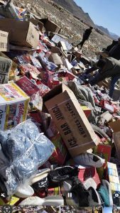 واشار الى ان البضائع المتلفة شملت العديد من الأصناف منها شيش الكترونية وملابس وحلوى تحمل شعارات خادشة ومنافية للدين والأخلاق وتحتوي على عبارات بالعبرية .