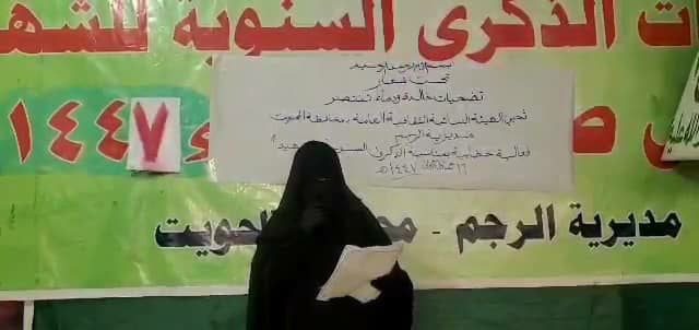 🟢 *المحويت.. فعاليات وأنشطة للهيئة النسائية في مديرية الرجم بذكرى سنوية الشهيد ١٤٤٧هـ*