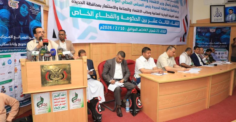 انعقاد اللقاء الثالث عشر بين الحكومة والقطاع الخاص بمحافظة الحديدة